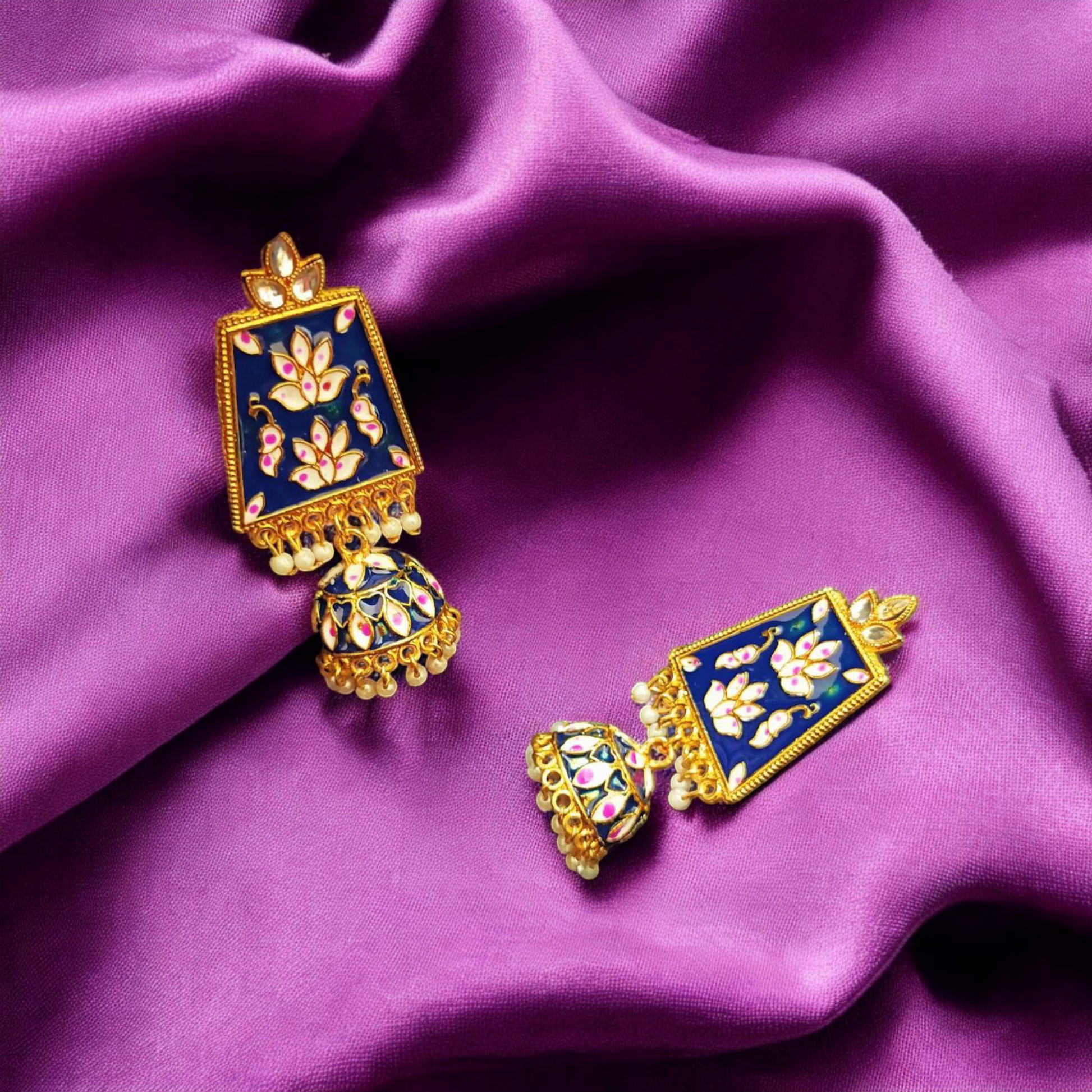 Meadow Enamel Jhumkas – Emerald Blush Earrings