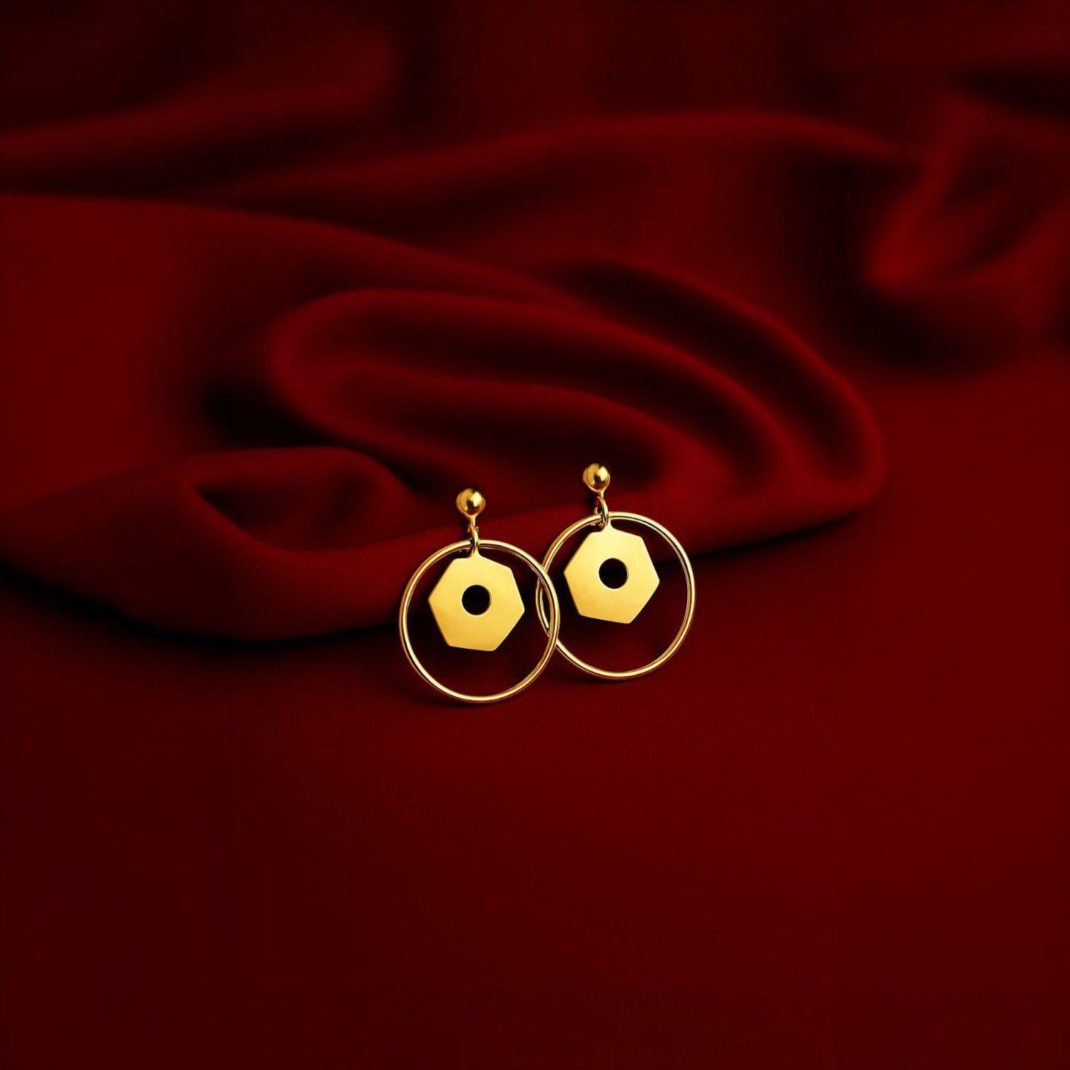 Stainless Steel - Hexa Halo Hoop Earrings